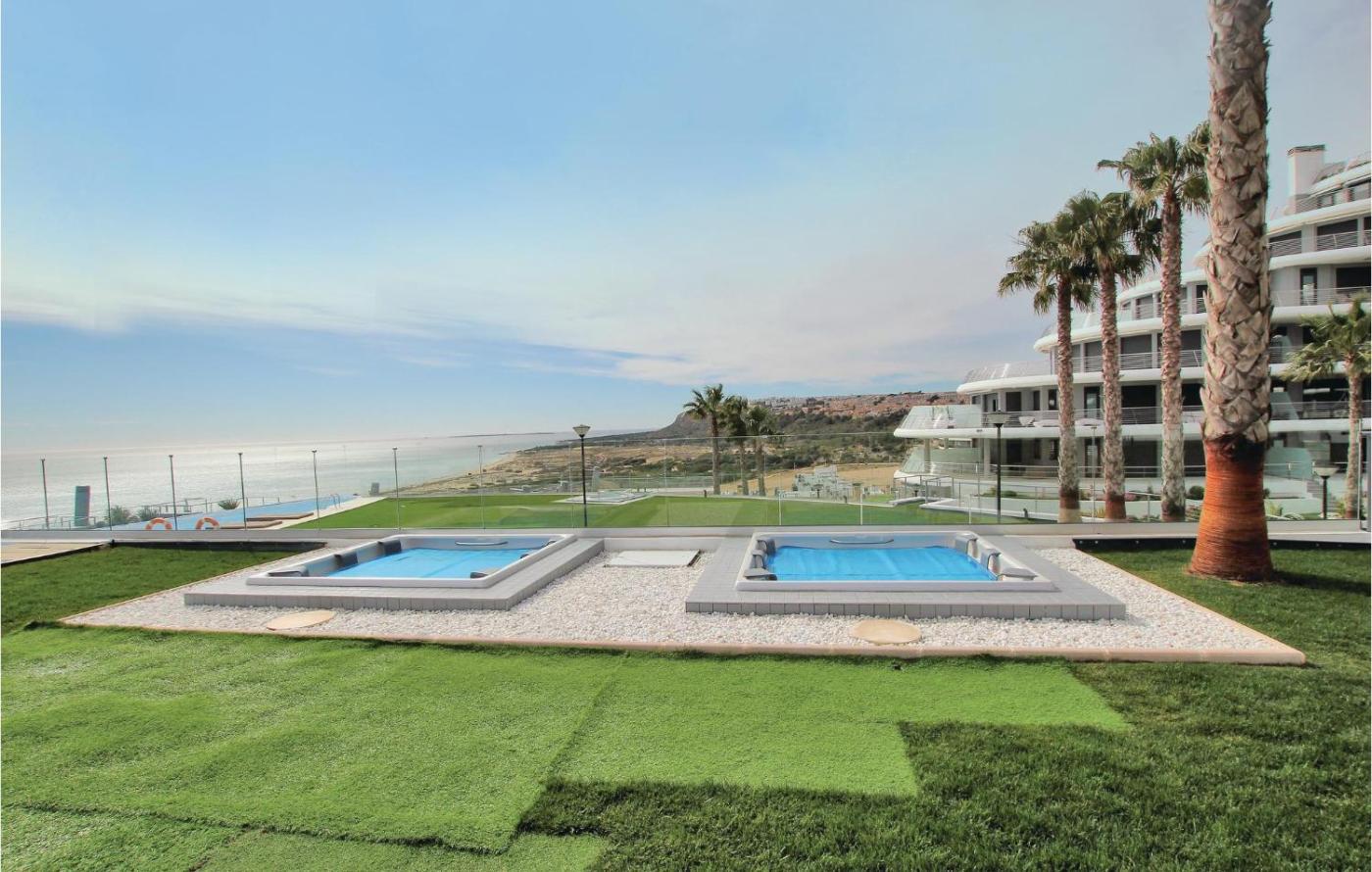 Set in Arenales del Sol, Gorgeous Apartment In Elche With Sauna offers accommodation with a heated pool and sea views. This beachfront property offers access to free WiFi and free private parking. The apartment has a sauna and a lift.