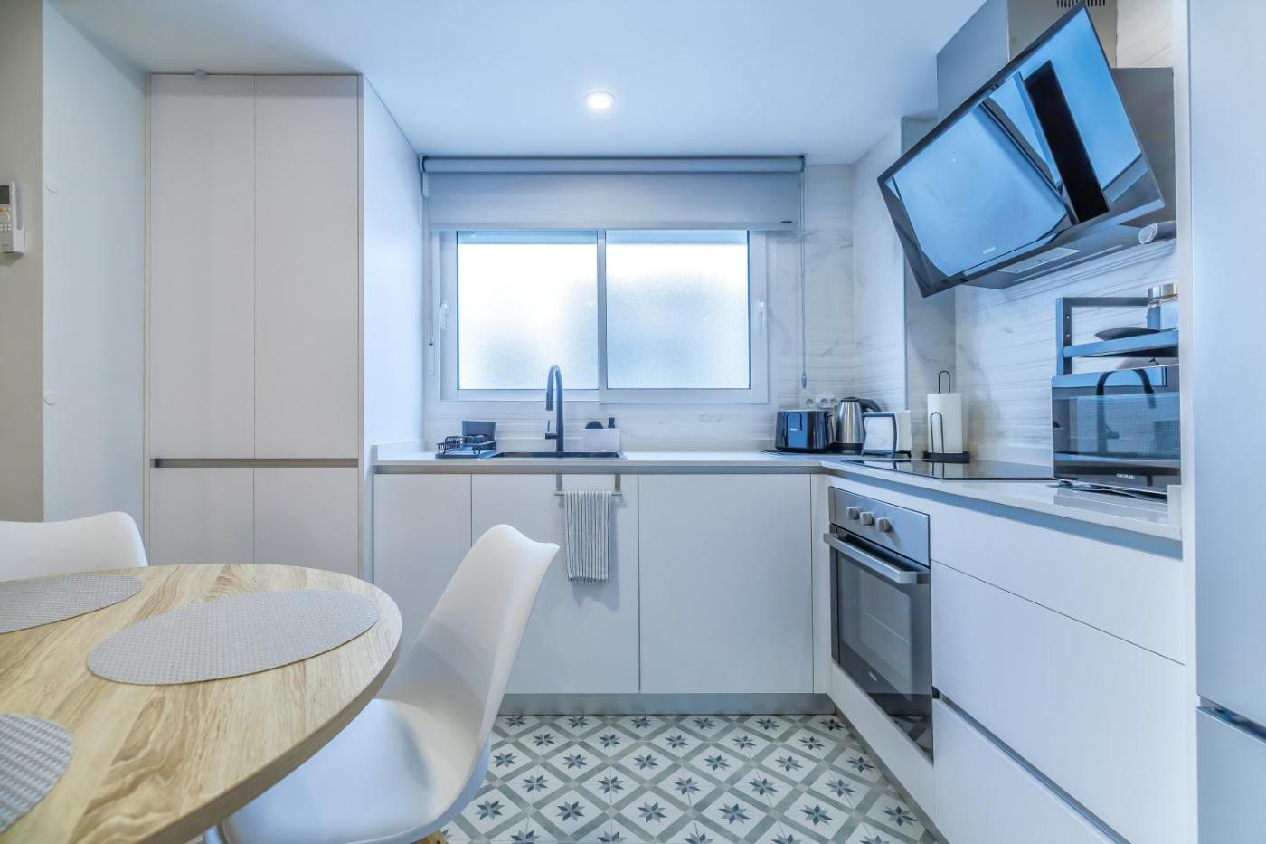 Three-Bedroom Apartment. Boasting a private entrance, this air-conditioned apartment features 1 living room, 3 separate bedrooms and 1 bathroom with a walk-in shower and a hairdryer. In the kitchen, guests will find a stovetop, a refrigerator, kitchenware and an oven. The apartment has tiled floors, a seating area with a flat-screen TV with streaming services, a washing machine, soundproof walls, as well as a coffee machine. The unit has 4 beds.