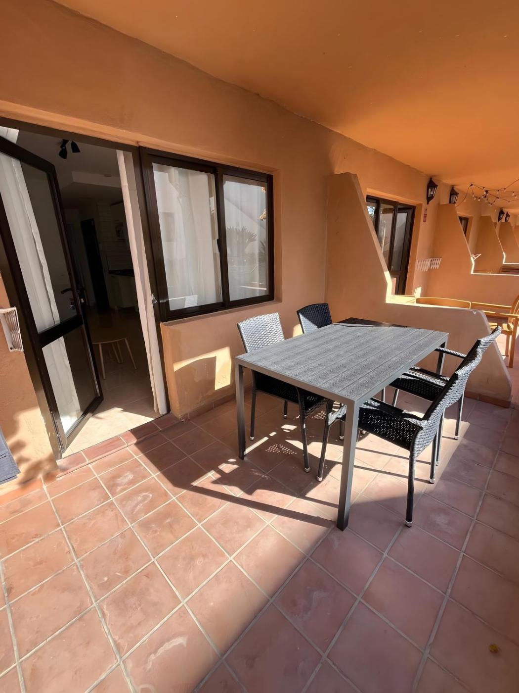 The apartment has a childrens playground and a year-round outdoor pool.