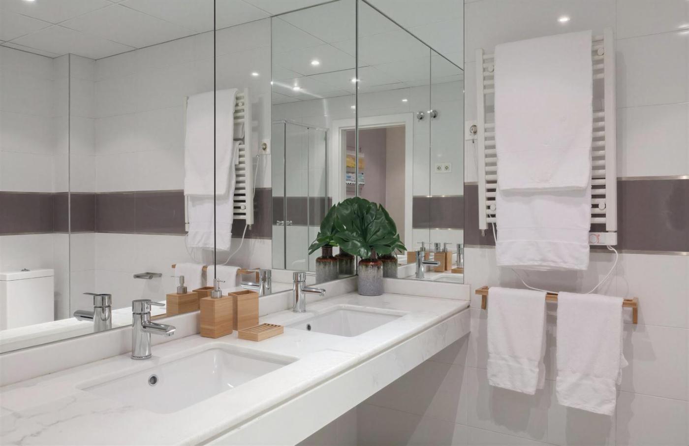 Two-Bedroom Superior Apartment. This spacious apartment comes with 1 living room, 2 separate bedrooms and 2 bathrooms with a shower. Guests can make meals in the kitchen that features a refrigerator, a dishwasher, kitchenware and an oven. The apartment features air conditioning, a washing machine, a coffee machine, a wardrobe, as well as a flat-screen TV. The unit has 4 beds. ;