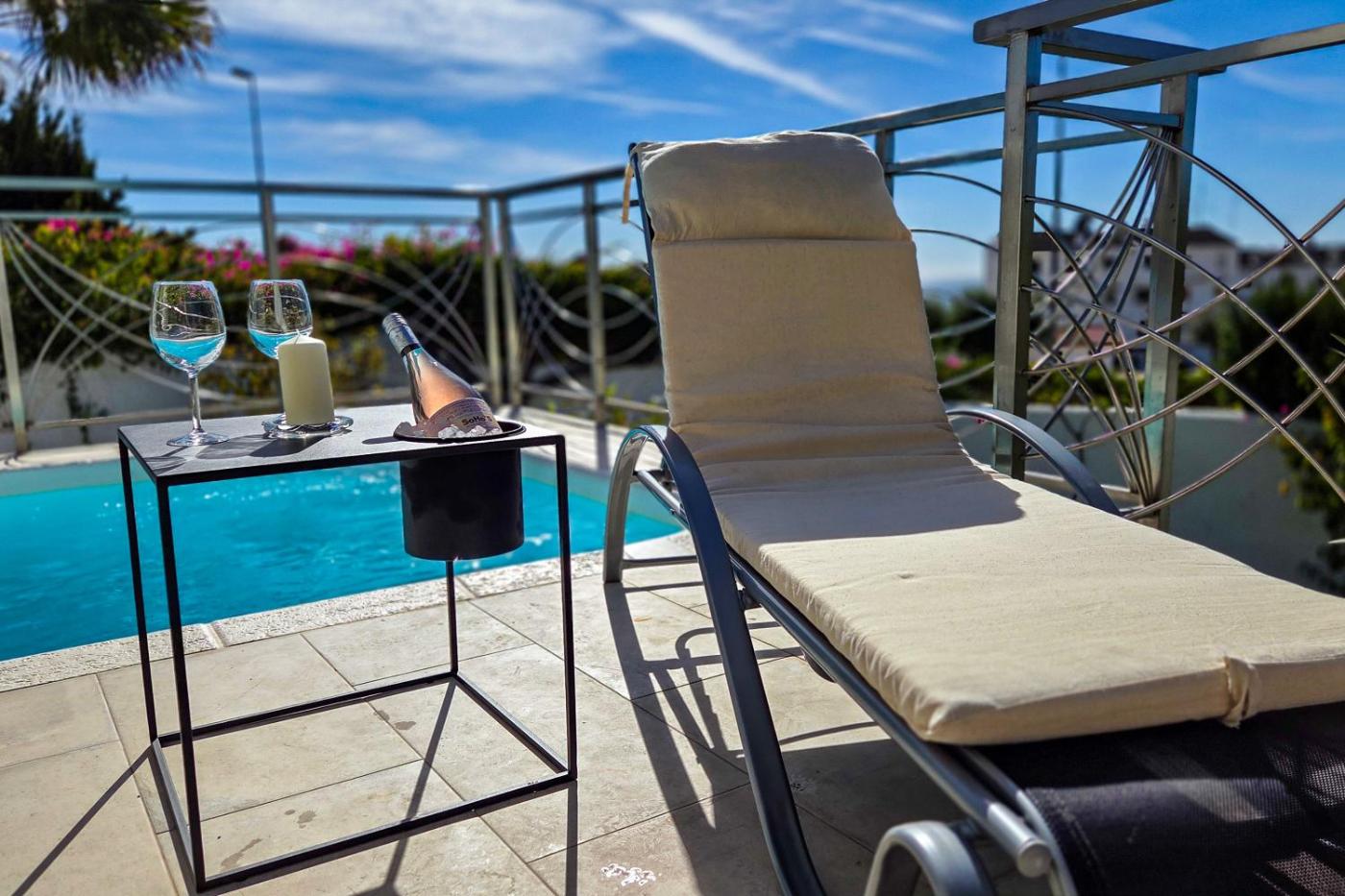Two-Bedroom Apartment. Guests will have a special experience as this apartment offers a pool with a view and a fireplace. Featuring a private entrance, this spacious apartment also comprises 2 bedrooms, a seating area and 1 bathroom with a walk-in shower and a hairdryer. The well-equipped kitchen features a stovetop, a refrigerator, kitchenware and an oven. The air-conditioned apartment provides a flat-screen TV with streaming services, a washing machine, a tea and coffee maker, a dining area as well as sea views. The unit offers 4 beds.